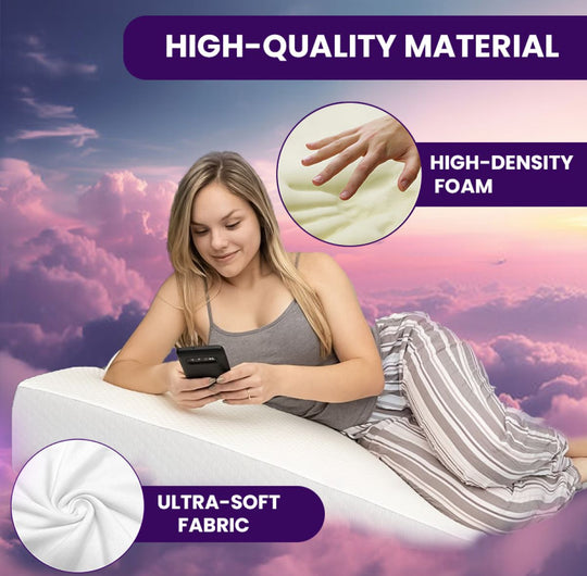 Relieve chronic back pain and reduce acid reflux with our wedge cushion, designed for superior comfort and support. Enhance post-surgical recovery, improve nighttime breathing, and minimize snoring for better sleep quality. Boost circulation, support pregnancy sleep positions, and alleviate sinus congestion. Perfect for bedridden patients, it promotes a healthy sleep posture, ensuring you wake up refreshed and rejuvenated.
